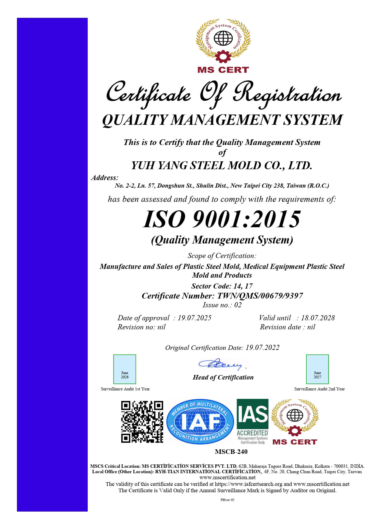 通過 QMS 體系認證之一級製造廠
